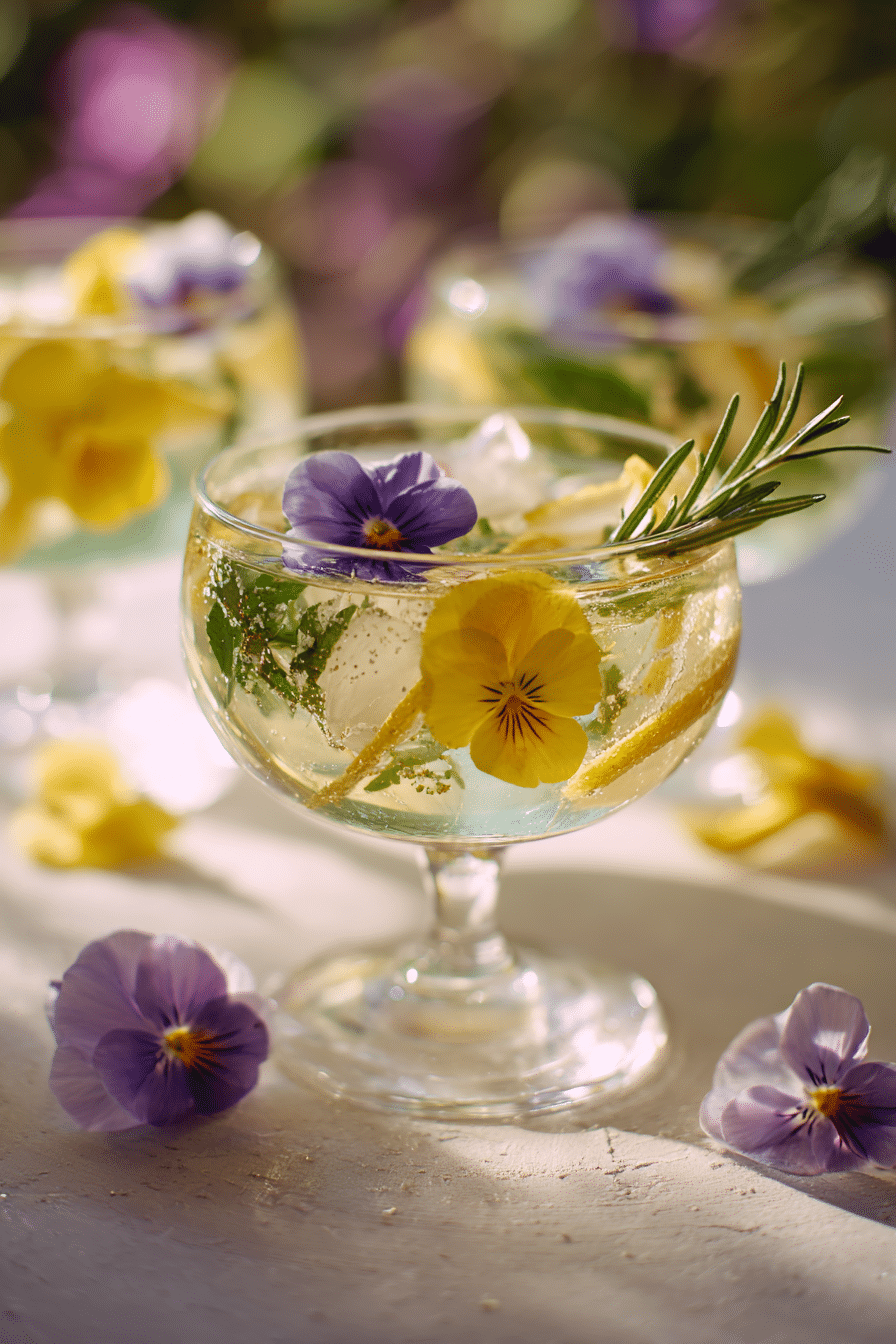 - Garnish with edible flowers, a rosemary sprig, or lemon twist.