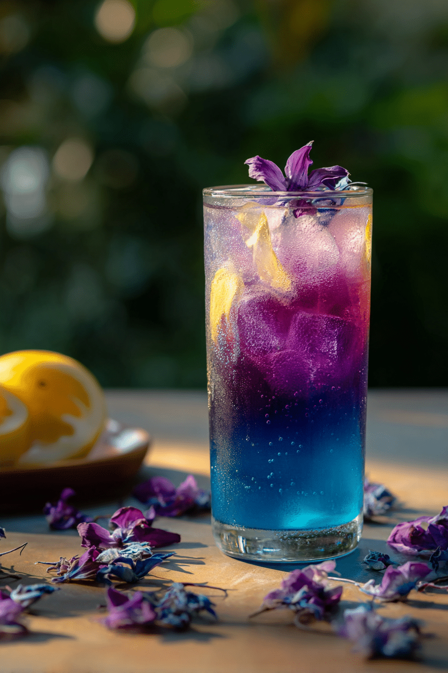 Butterfly Pea Lemonade is a vibrant, color-changing drink made from butterfly pea flower tea and fresh lemon juice. Naturally deep blue before citrus is added, it transforms into purple or pink when mixed with acid, making it visually striking and refreshing. This easy lemonade recipe takes just 15 minutes and balances floral notes with bright citrus sweetness. The key is brewing a strong blue tea concentrate and layering the lemonade for dramatic color contrast.