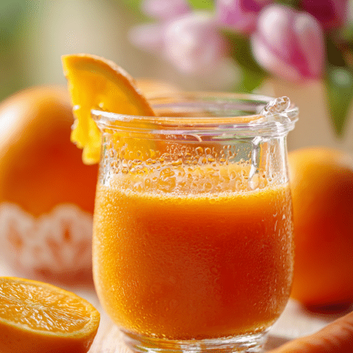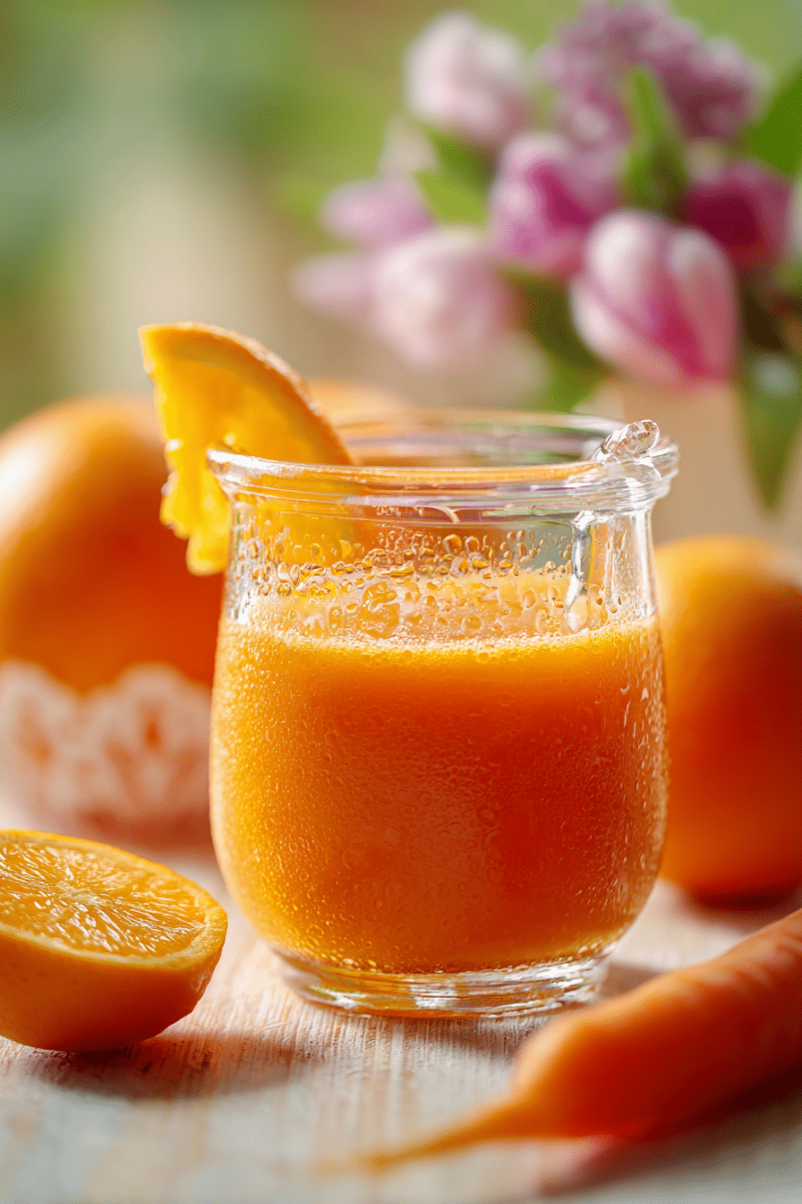 A vibrant juice combining carrots, orange, and ginger for a refreshing, vitamin-packed Easter brunch drink.