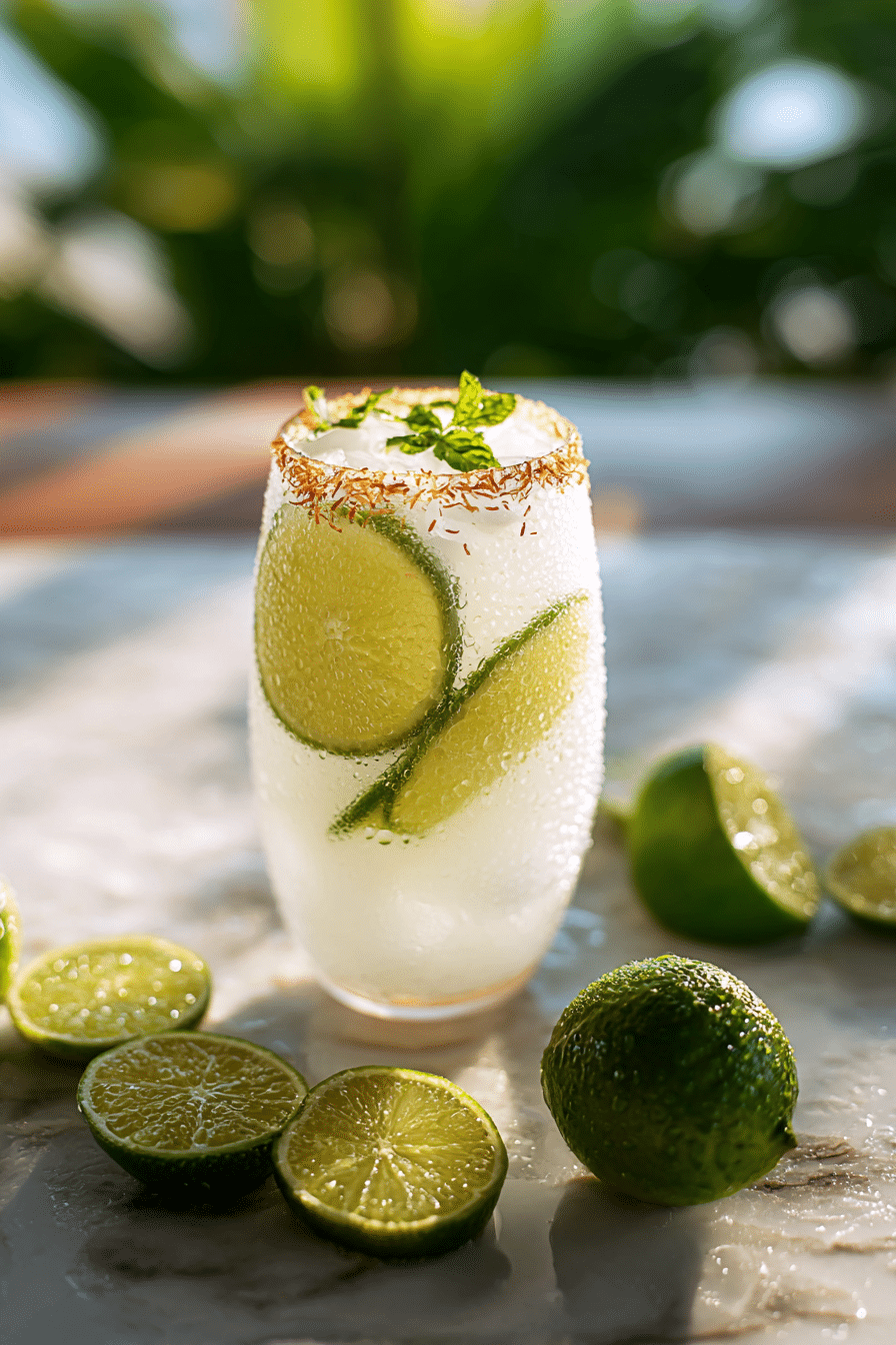 A creamy, fizzy coconut and lime drink with tropical flavor and refreshing citrus brightness. Perfect for hot days and party serving.