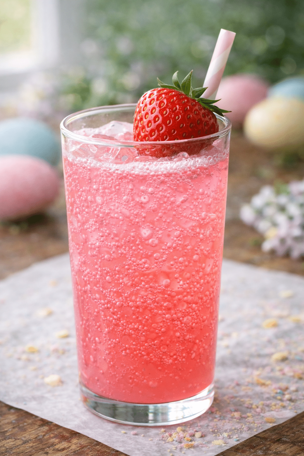- Garnish with a fresh strawberry on the rim or a pinch of pastel sprinkles.