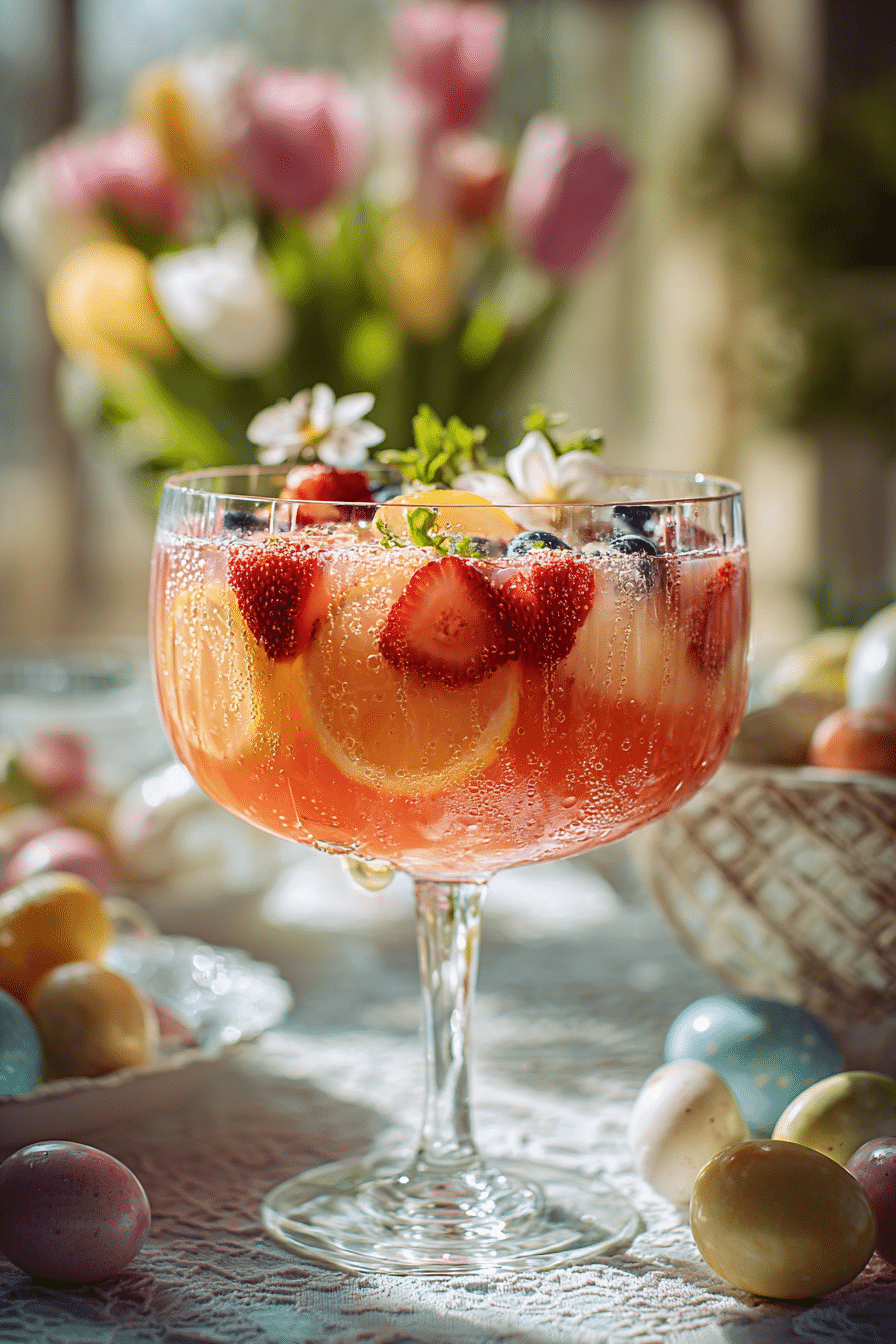 A colorful, fruity punch made with juice, citrus, and sparkling soda—perfect for serving a crowd at Easter celebrations.