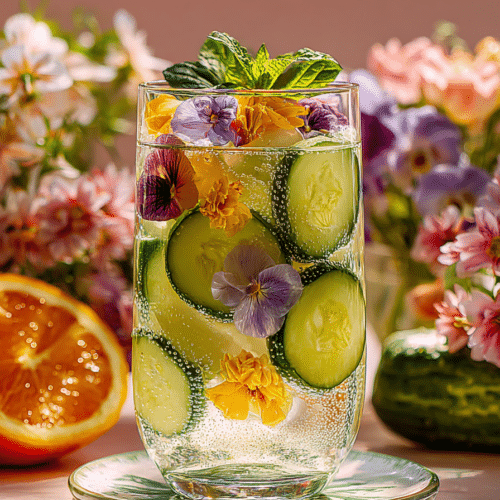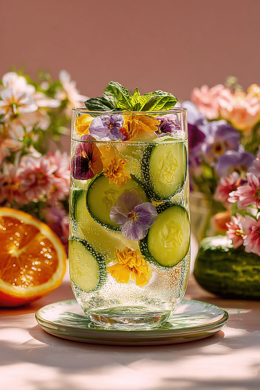 - Garnish with edible flowers and citrus slices, then serve immediately.