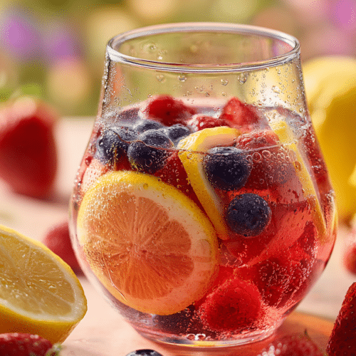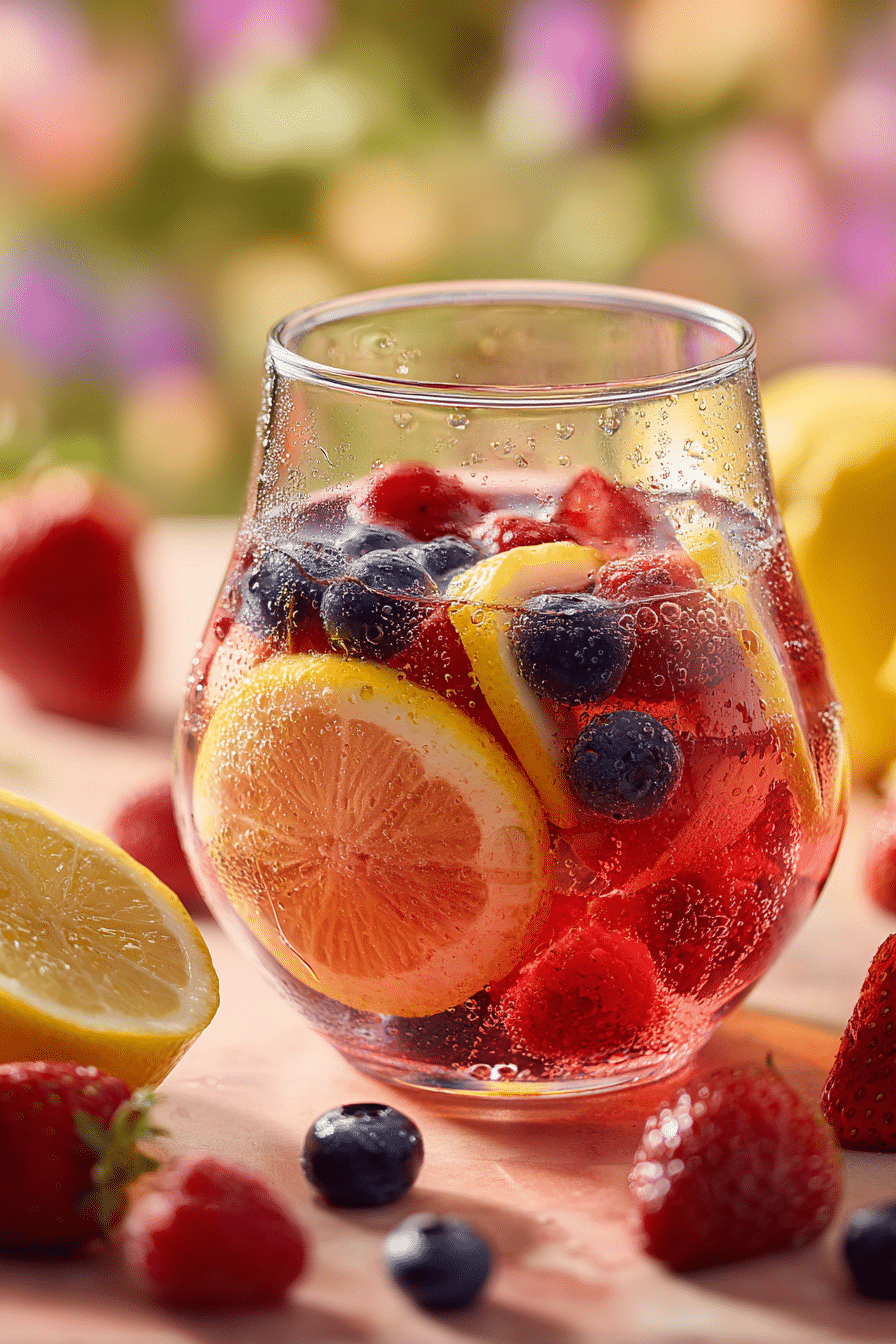 - Garnish with lemon slices, berries, and mint, then serve immediately.