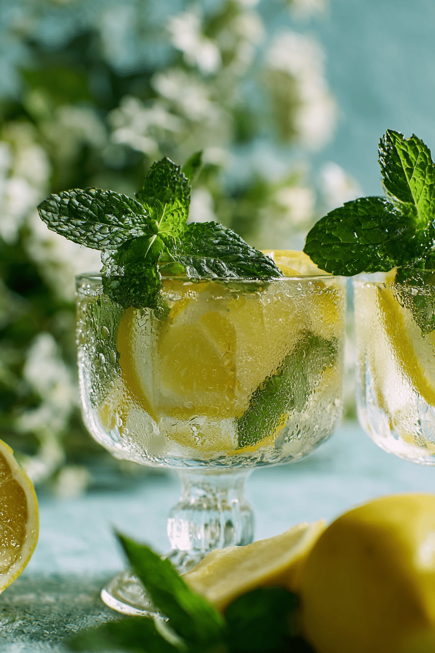 A refreshing citrus mocktail with fresh mint and lemon, finished with sparkling water for a light and cooling spring drink.