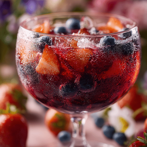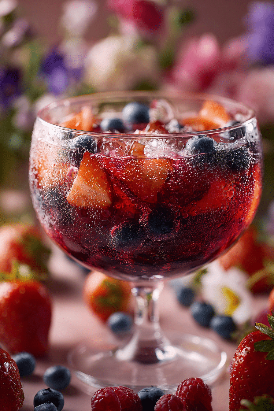 A refreshing punch made with mixed berries, citrus juice, and sparkling water, perfect for festive spring celebrations.