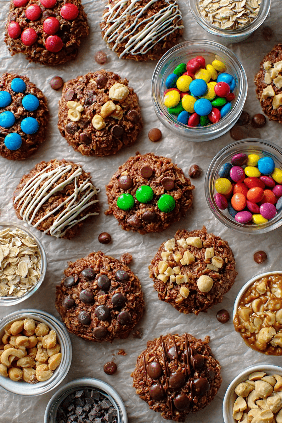But here’s the thing nobody really talks about: no-bake cookies are perfect for customization. The base — that classic oatmeal-chocolate-peanut butter mixture — is sturdy enough to hold toppings, flexible enough to be shaped, and forgiving enough that even a five-year-old can press one into a cookie cutter and feel like a genius. If you love exploring the full range of what no-bake treats can look like, the Classic Cookies on this site is a great place to start before you set up your station.