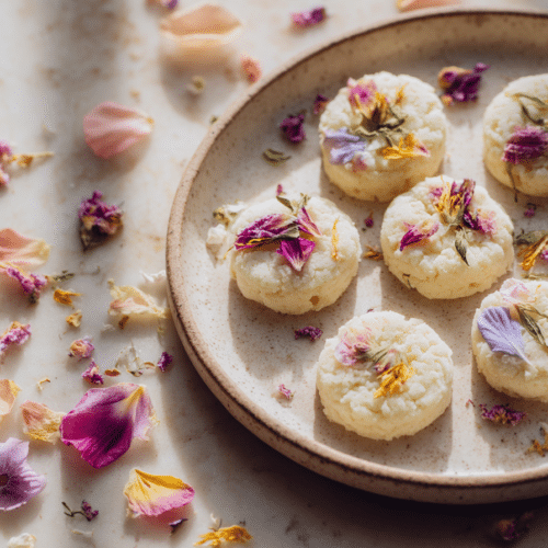 No-Bake Edible Flower Shortbread Bites – Buttery & Delicate