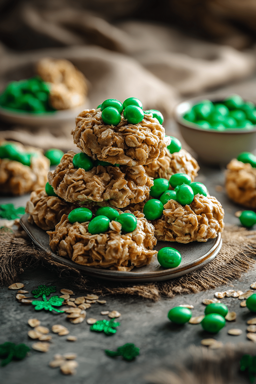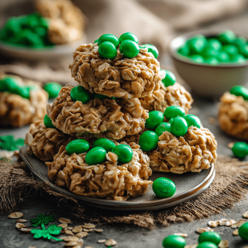 Peanut butter no bake cookies St. Patrick’s Day always make me think of the bright green candies scattered across my mom’s kitchen table every March. When I was growing up, holiday treats in our house were usually quick stovetop sweets we could mix together before the decorations were even finished. My mom always said peanut butter cookies were the easiest way to bring everyone into the kitchen with just a wooden spoon and a saucepan. This takes me right back to those afternoons, mixing oats, sneaking candy pieces, and waiting for the cookies to set while the whole kitchen smelled sweet and warm.