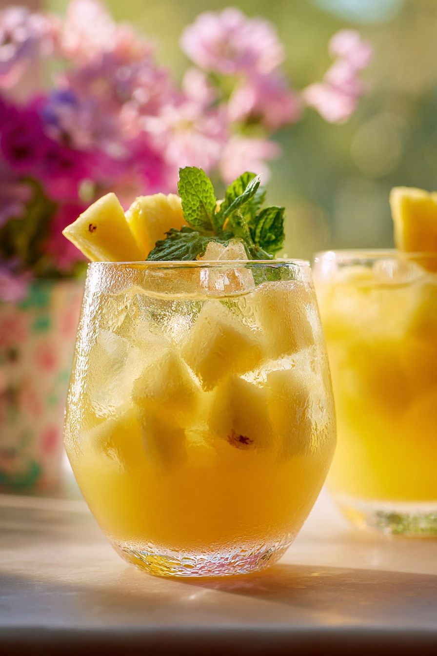 A refreshing pineapple-based mocktail with citrus and sparkling water, offering a bright and tropical flavor perfect for spring gatherings.