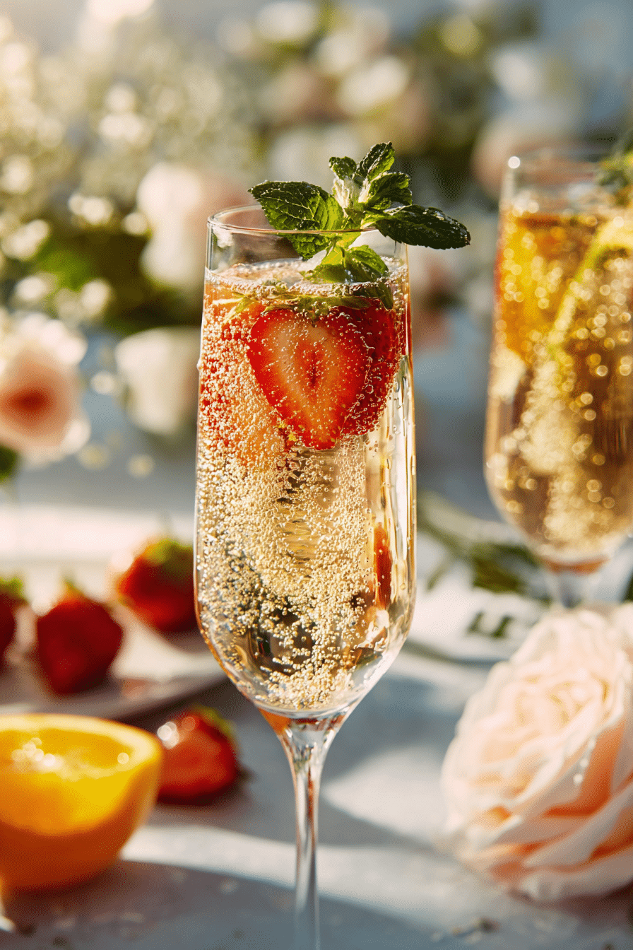 - Peach version: Swap strawberry for peach puree (Bellini-style)
